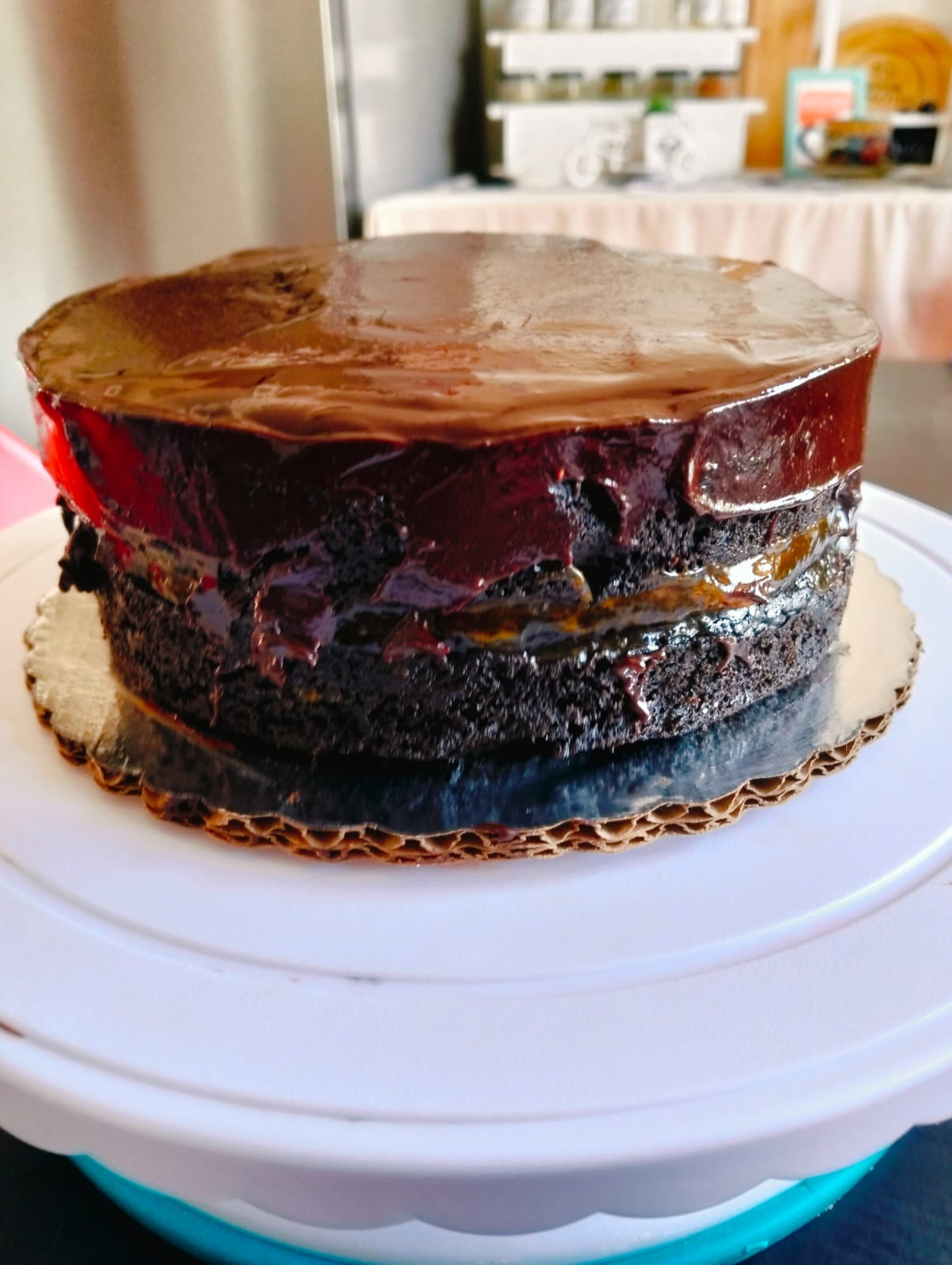 Tarta Sacher de chocolate con relleno de mermelada de durazno y corona con un baño de chocolate semi amargo